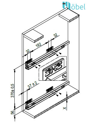 Teljes kihúzású sínek a szekrény oldalára szerelve;